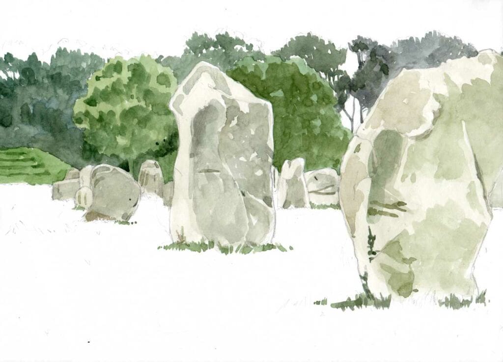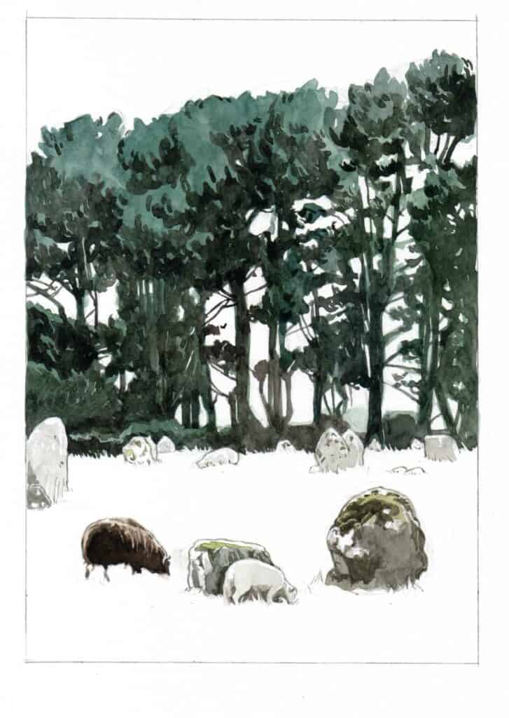 Deux artistes pour deux approches complémentaires : les mégalithes de Carnac, désormais inscrits au patrimoine mondial de l'UNESCO constituent un "sujet" peu évident à aborder graphiquement.