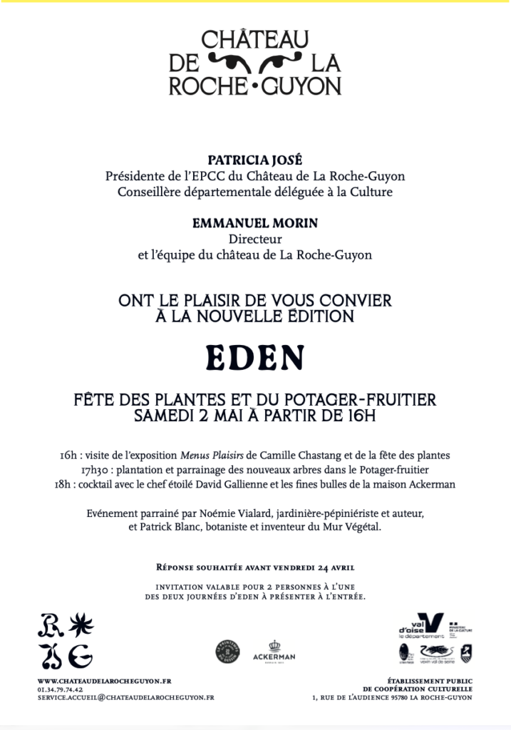 L’exposition « Menus Plaisirs », conçue pour Eden, fêtes des plantes et du jardin-potager au Château de La Roche-Guyon, propose une déambulation dans le parcours de visite où dessins et céramiques dialoguent avec l’histoire du lieu. Le parcours se conclut par un papier peint rendant hommage à la duchesse d’Enville. L’artiste Camille Chastang explore le potentiel politique et féministe du motif floral : les fleurs expriment spontanéité, sensualité et liberté plutôt qu’une précision scientifique. Le titre renvoie à l’inscription « C’est mon plaisir » et souligne le plaisir du geste, du regard et de la forme. L’ensemble s’inscrit dans l’héritage du mouvement Pattern & Decoration, qui revendiquait la valeur du décoratif et célébrait plaisir, douceur, romantisme, égalité et conscience historique.