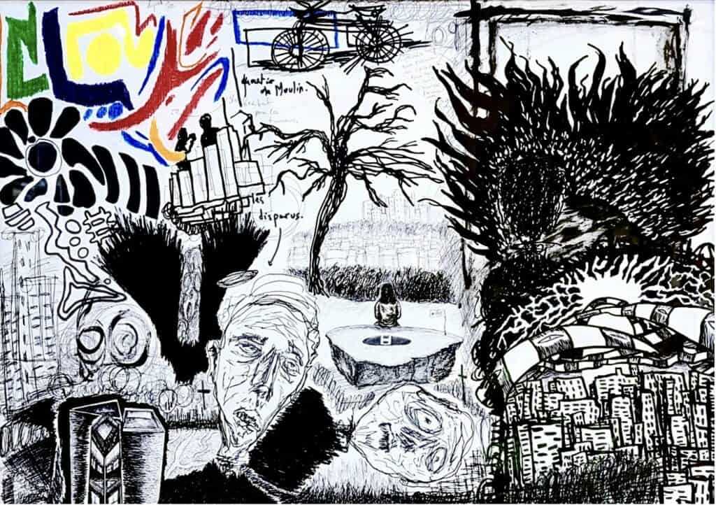 Bien que leurs approches stylistiques soient aux antipodes, l’exposition révèle une quête commune : celle de l’aventure de la ligne. Au sein de leurs œuvres, les gestes témoignent, les outils graphiques deviennent le prolongement des artistes, de ce qui demeure en eux. Une aventure de la ligne hautement intime de laquelle surgissent des langages nouveaux. Chacun, à sa manière, laisse le dessin rythmer la fiction qu’il construit. Sur le papier, la main devance la pensée, trace une empreinte qui ordonne le récit, ouvrant la voie vers des espaces autant physiques que mentaux.